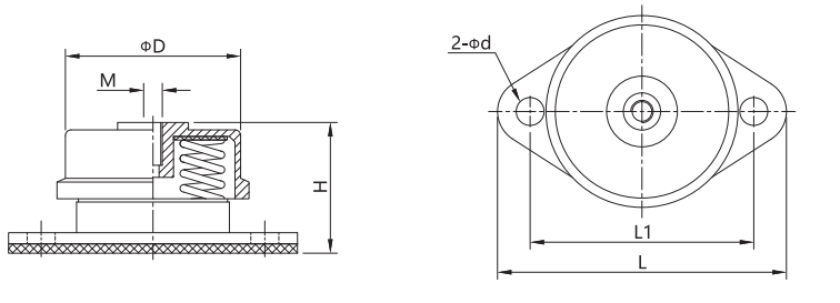 FZD型阻尼彈簧減震器產(chǎn)品主要特點(diǎn)與用途:FZD型阻尼彈簧減震器又稱(chēng)預(yù)應(yīng)力彈簧減振器,具有鋼制彈簧減震器的低頻率和阻尼大的雙重優(yōu)點(diǎn),消除鋼彈簧固有的共振振幅現(xiàn)象。該系列產(chǎn)品共20種規(guī)格,其單只荷載15kg-4800kg,各類(lèi)荷載所應(yīng)對(duì)的固有頻率2.0Hz-4.6Hz,阻尼比0.065。該系列減震器荷載范圍廣, 便于用戶(hù)選擇,固有頻率低,隔振效果好,并且結(jié)構(gòu)緊湊,外形尺寸較小,安裝更換方便,使用安全可靠,工作壽命長(zhǎng),對(duì)工作環(huán)境適應(yīng)性強(qiáng),并能在-40℃-110℃環(huán)境下正常工作。對(duì)積極隔振、消極隔振、沖擊振動(dòng)和固體傳聲的隔離均有明顯的效果。是隔離振動(dòng)降低噪聲、治理振動(dòng)公害、保護(hù)環(huán)境的理想減振器。ZTG型上下均可固定.