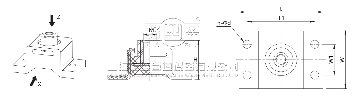 BE型橡膠隔振2S由金屬與橡膠復合制成,金屬表面全部包復橡膠,能防止金屬銹蝕。產品固有頻率低,阻尼比適宜,橫向剛度高于垂向剛度,適用平置、倒置及側掛等多種安裝形式。平置使用時,橫向穩定性好。當承受較大沖擊時,可自動限位保護,同時對共振峰的抑制能力很強,對瞬態沖擊響應瞬時過度工況等引起的自振能迅速消失,設備不致出現晃動。該產品在較寬的干擾頻率范圍內有相當明顯的隔振效果,能適用于各 類陸地、船用機械設備,如柴油機、風機、水泵、空壓機、空調機、精密儀器儀表等中、小型機械設備的隔振。對有水平擾力的機械設備,使用本隔振器能取得良好的隔振效果。