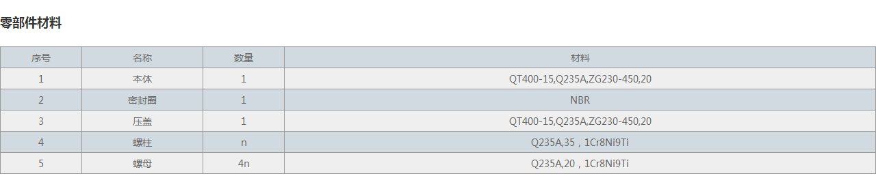 | 3 | 壓蓋 | 1 | QT400-15,Q235A,ZG230-450,20 |